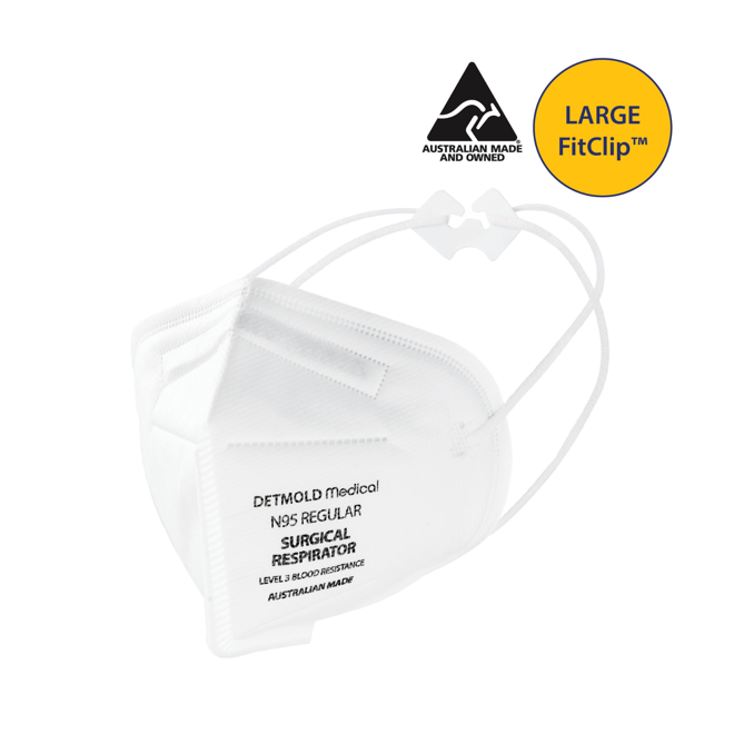 - Detmold Medical N95 Face Masks come with a regular-size FitClip™ already attached. Need a longer band? Buy the larger size FitClip™ here.