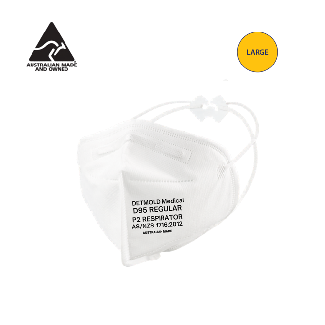 Need to buy these masks in bulk volume? Click here to order our carton quantity of the Detmold Medical LARGE D95 P2 Respirator Face Masks. Each carton contains 24 boxes of 25 masks (600 masks). For higher volume orders, please contact our Customer Service Team here.